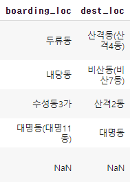dest_loc과 boarding_loc에 괄호<(,)> 를 포함한 값을 모두