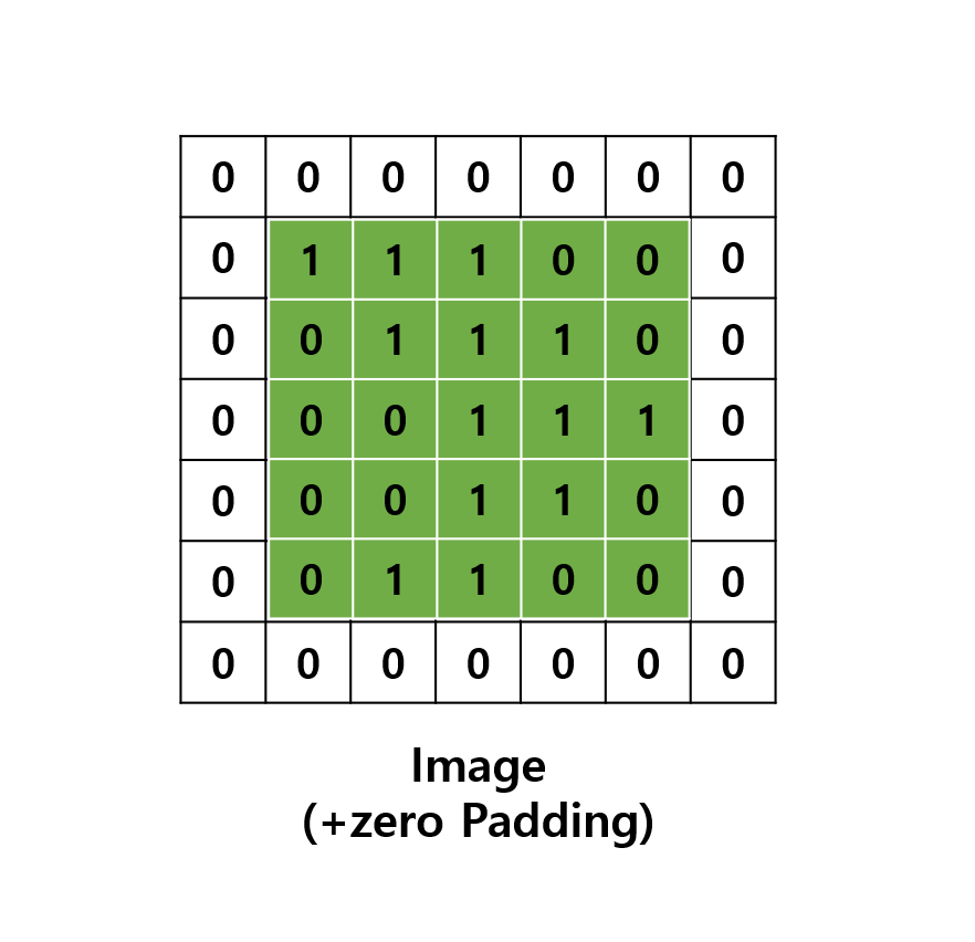 아래는 특징이나 분해능에 영향을 미치지 않는 Zero Padding 이며,