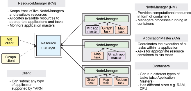 - YARN은 클러스터의 리소스를 컨테이너로 분할한다.