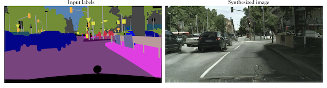 # Example of Semantic Image and GAN-Generated Cityscape Photograph with Condition GANs