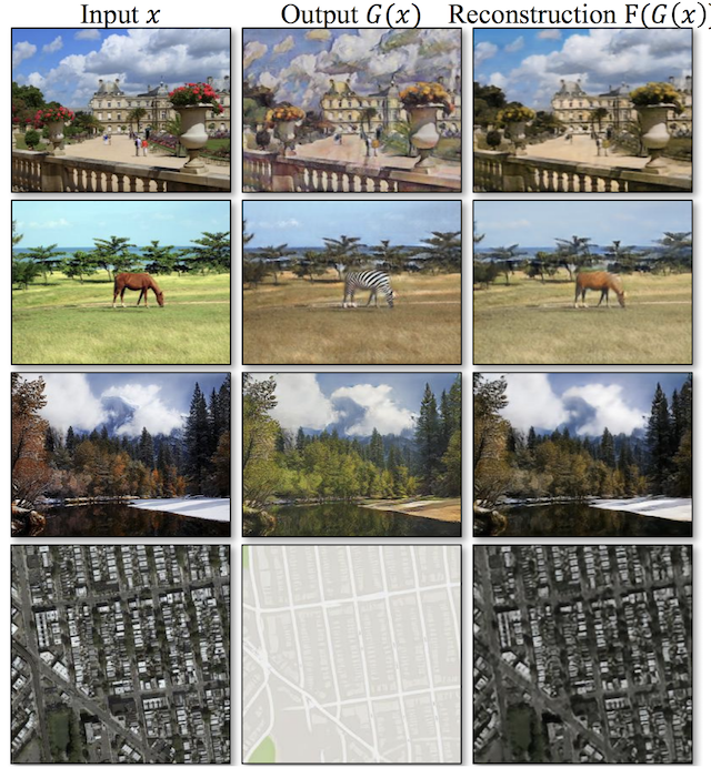 # Example of Four Image-to-Image Translations Performed With CycleGAN (left)