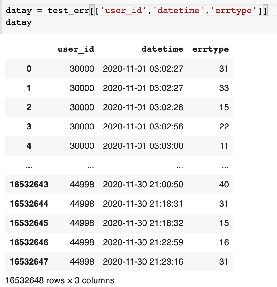 이를 원하는 목표의 DataFrame으로 만들어주는 코드는 아래와 같다.