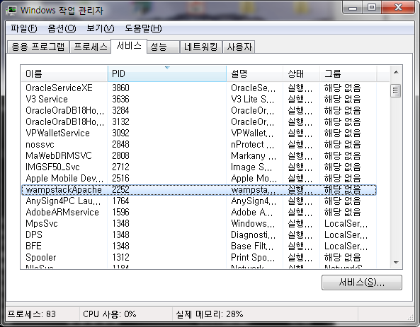 작업관리자-프로세스 탭에서 nginx가 실행되지 않는 경우,