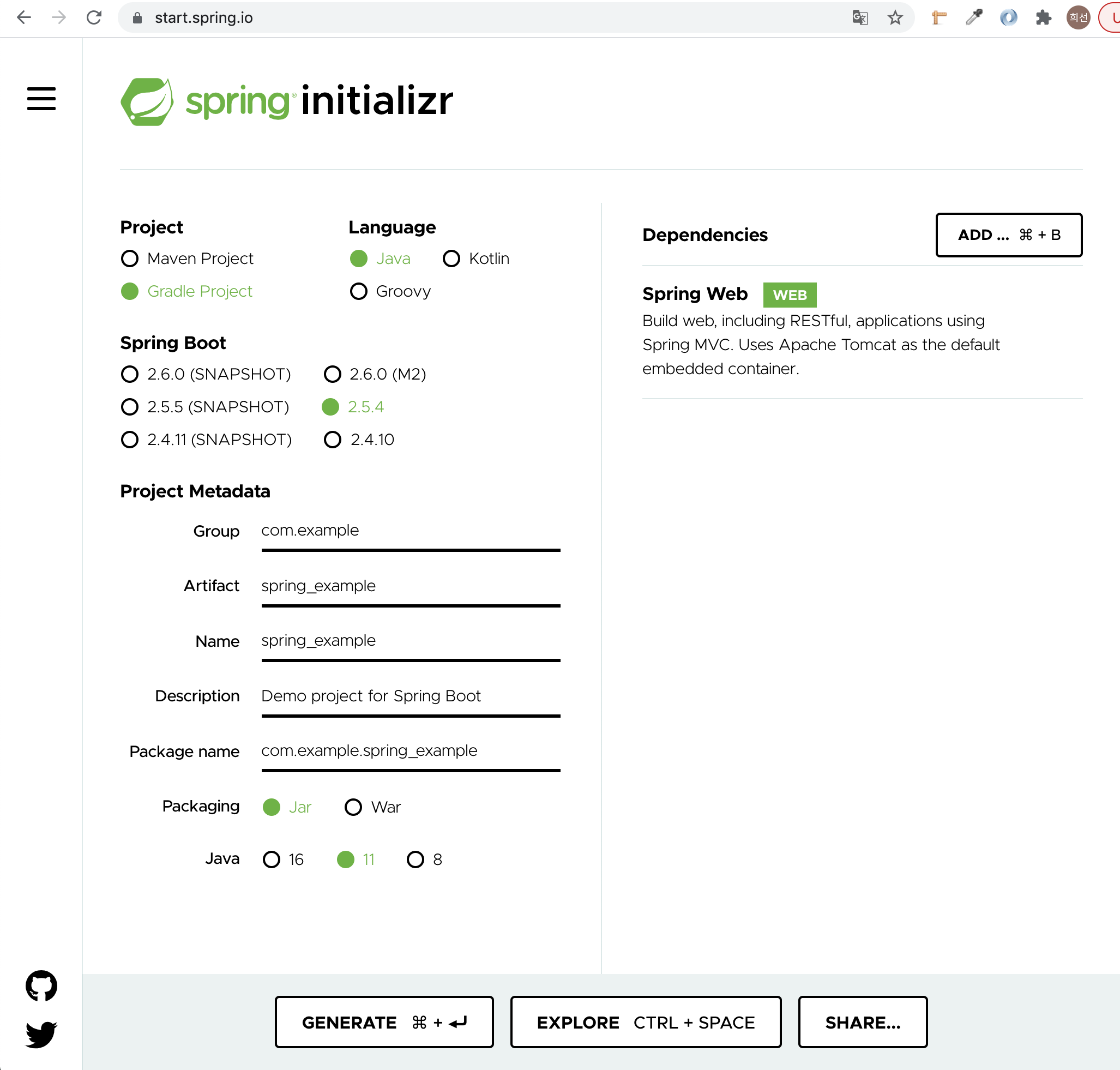 1. https://start.spring.io/ 에 접속