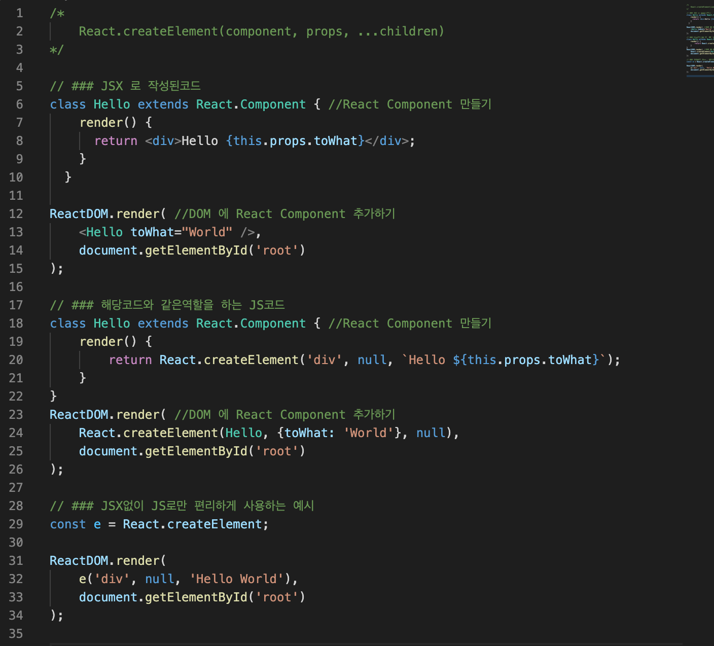 # 그렇다면 JSX를 사용하지않고, 순수 자바스크립트로만 React를 사용 가능할까?