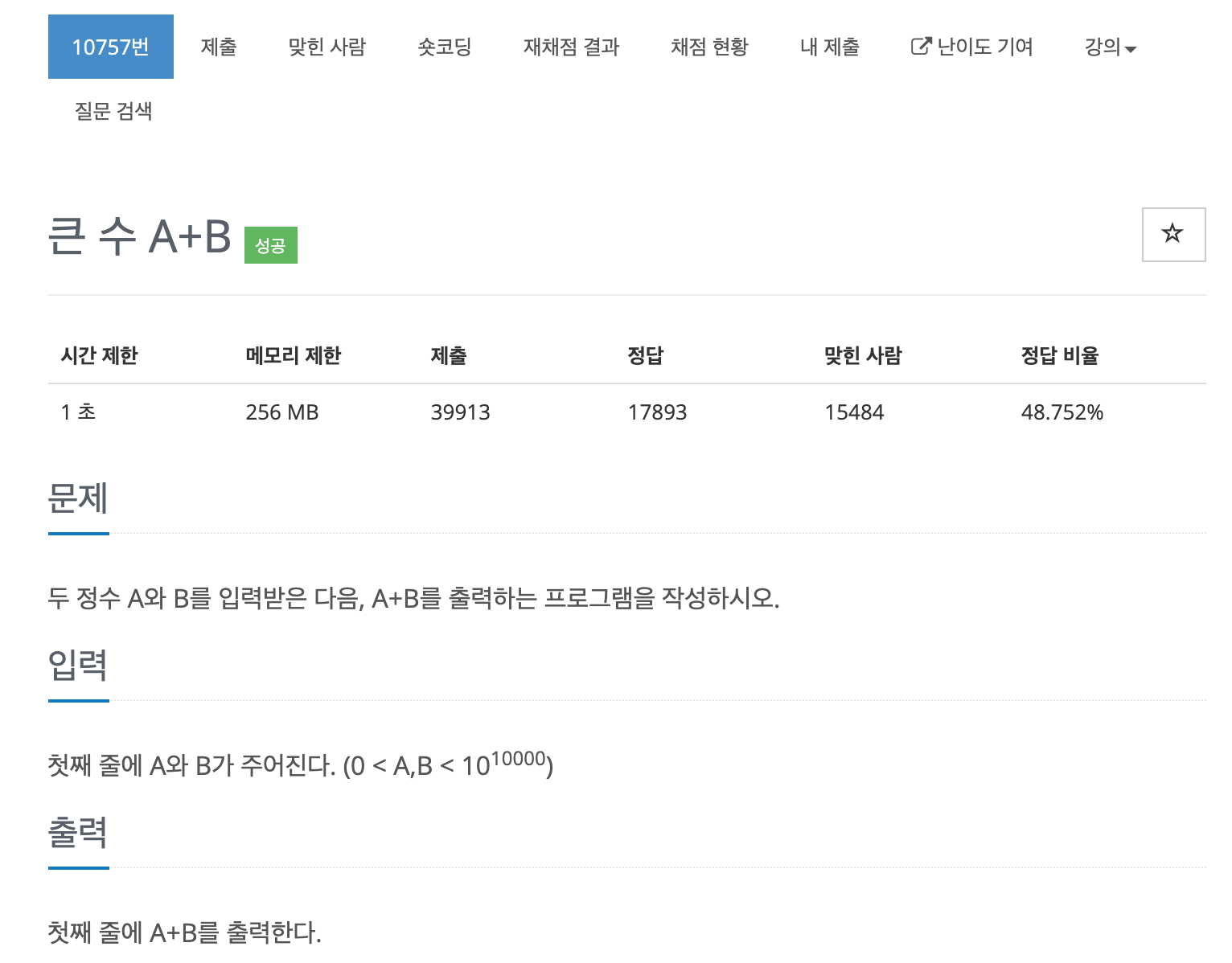 - A, B < 10^10_000 : A,B는 자릿수가 10000자리 수