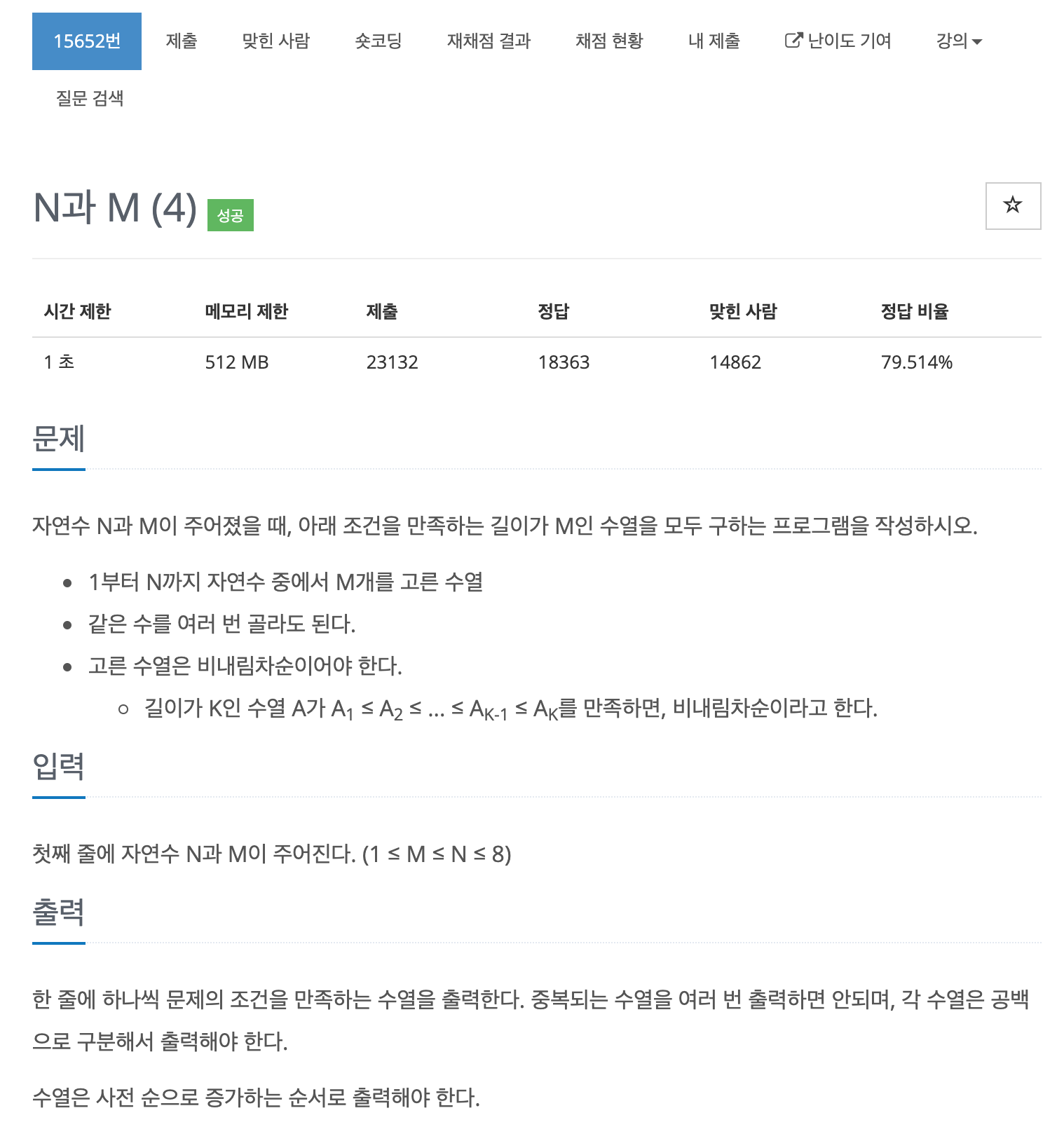 [Dev-Ping9] 백준 15649번 - N과 M (4) (Java) [DFS]코딩테스트/백준 2021. 12. 18. 17:32