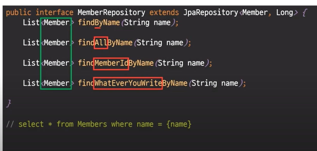 * 인터페이스만 생성해주면 JPA가 Proxy로 구현클래스를 만들어 수행해준다.
