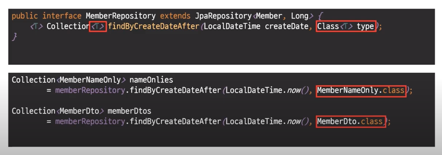 * 제네릭타입으로 Projection 을 수행한다. (필요한 DTO를 넣기만 하면된다. 역시 네이버의 뿌리는.. 👍)