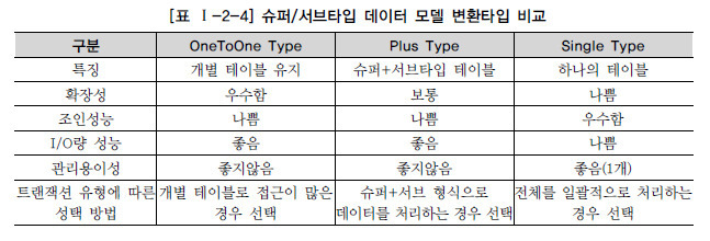# 슈퍼-서브타입 모델 비교