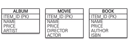 슈퍼타입과 각각의 서브타입을 테이블로 생성