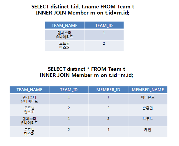 위의 그림을 머리에 넣어두고 JPQL에서 현상을 비교해보자.