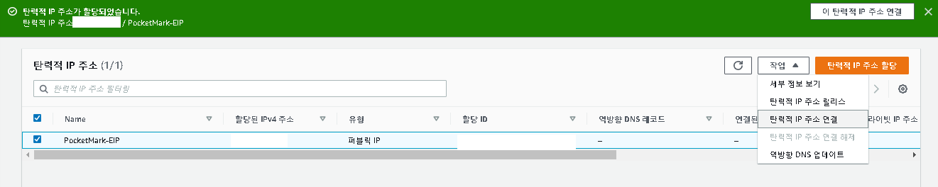 즉, 생성한 탄력적 IP는 무조건 EC2에 바로 연결 or 삭제