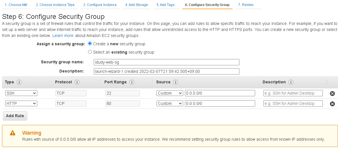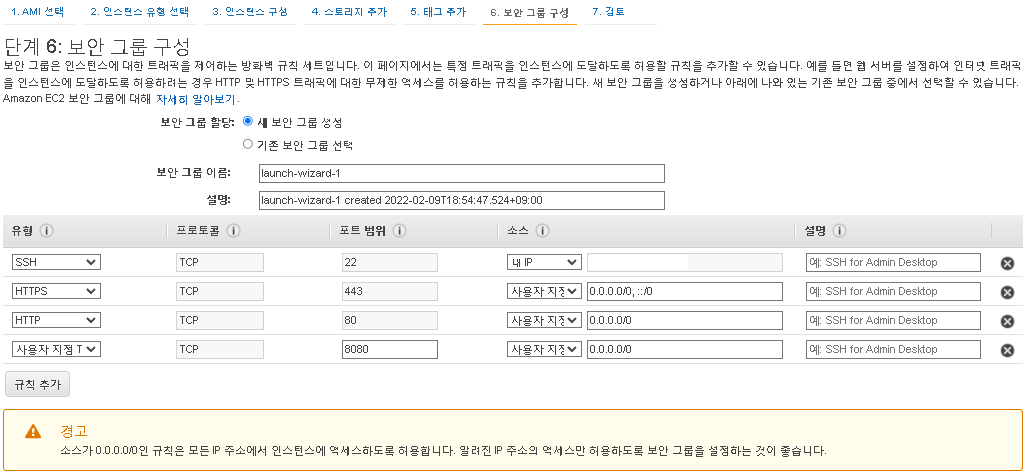 8. Step6) 보안그룹 설정 (Configure Security Group)