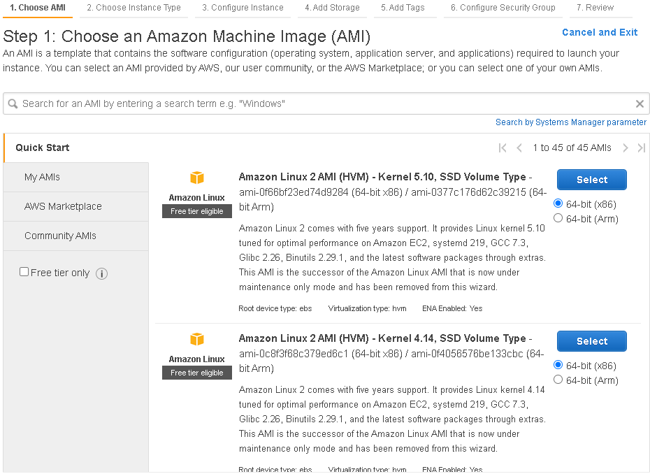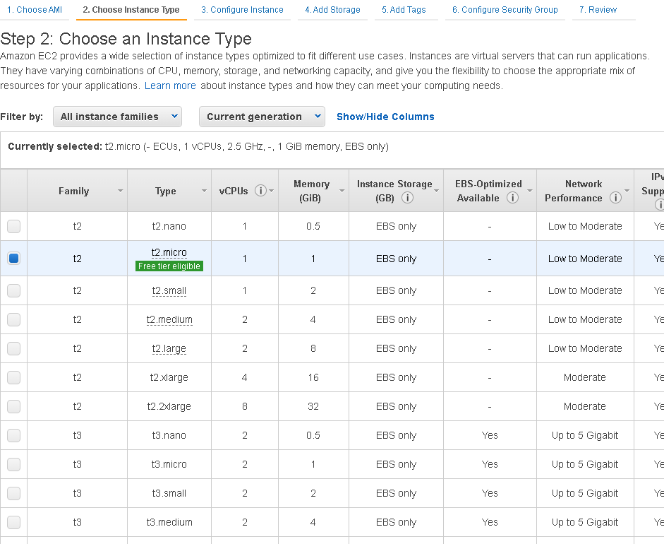 4. Step2) 인스턴스 유형 선택