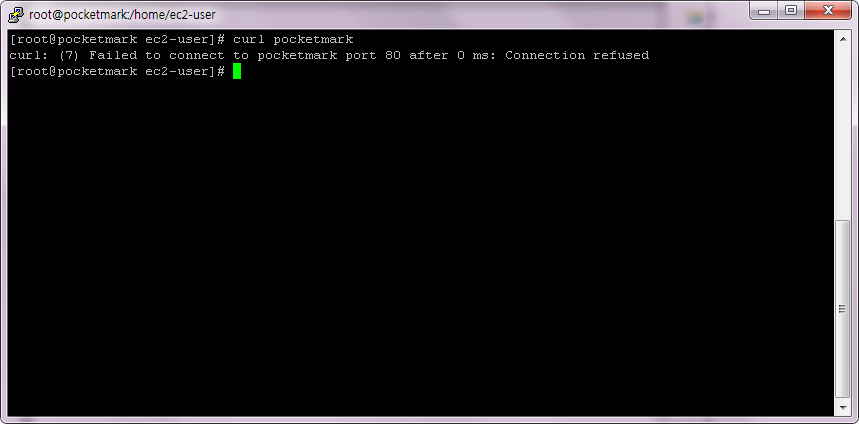 등록되었을 경우 Failed to connect to hostname port 80: Connection refused 에러가 뜰 것이다.