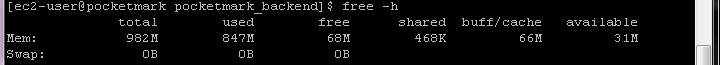 # 재부팅 후 SWAP 메모리가 적용된 모습