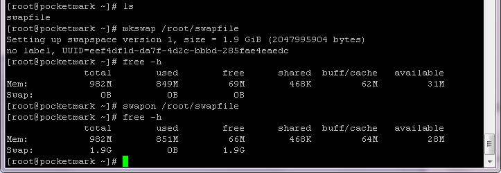 * 스왑파일로 설정 (mkswap) & 설정 후 메모리 상태