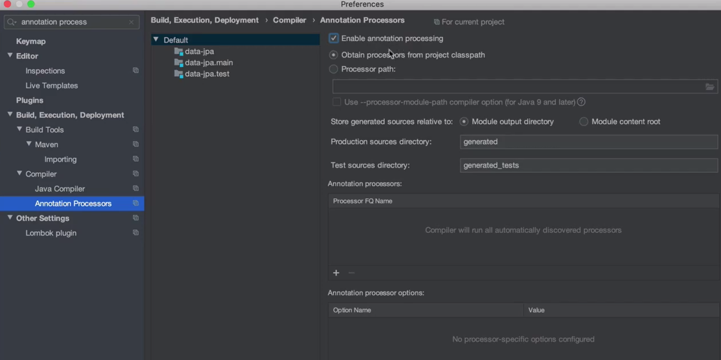 Preferences -> Anootation Processors 에서