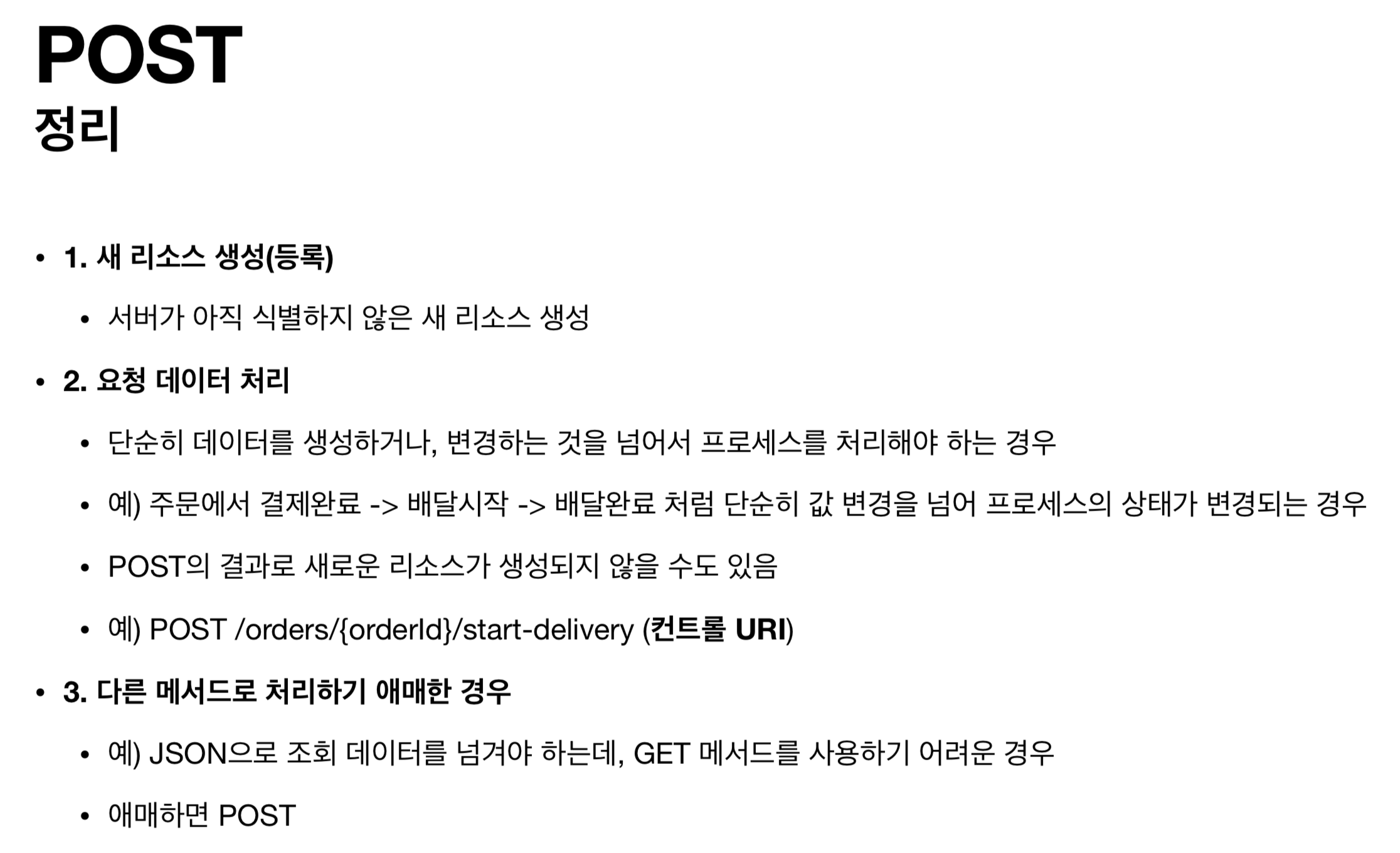 되도록 리소스 생성 / 프로세스 상태 변경에만 POST를 사용할 것