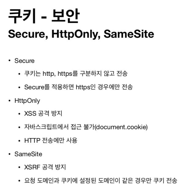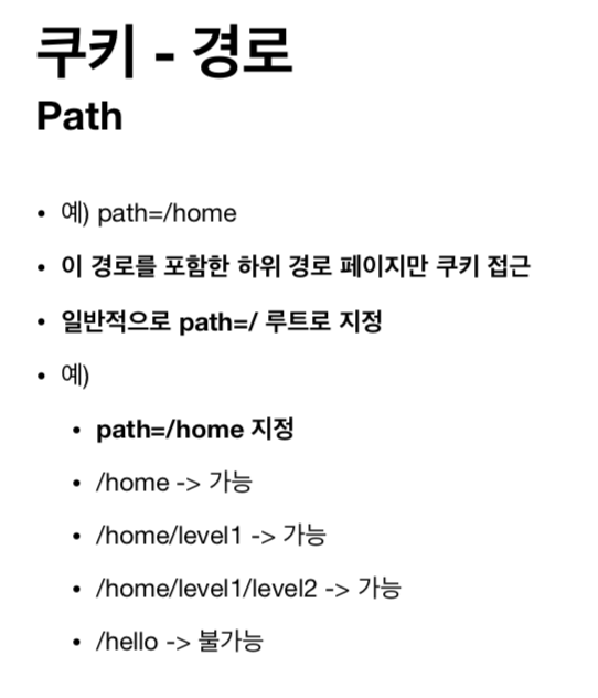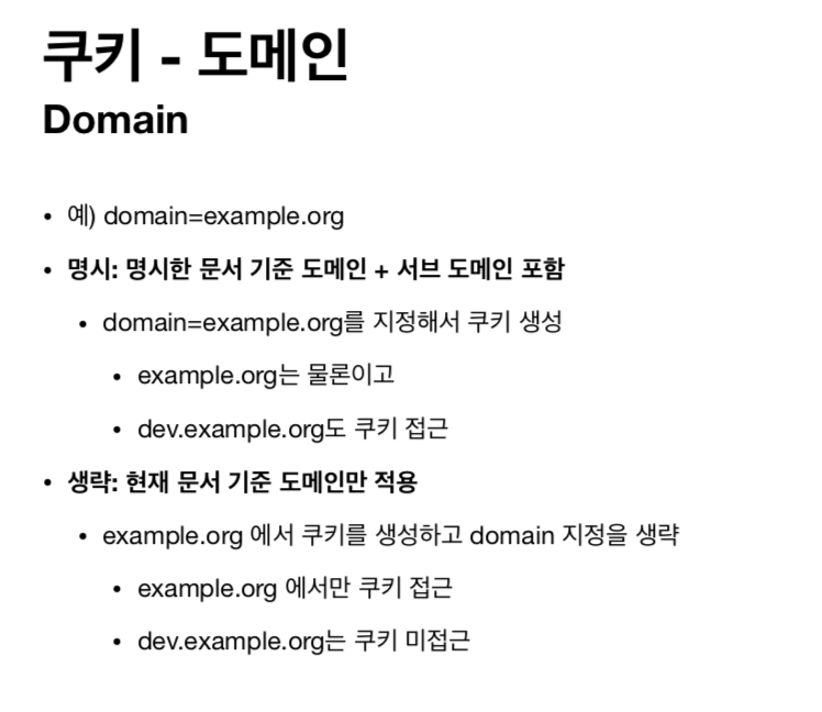 > ex) Set-Cookie: sessionId=abcd12; max-age=3600; path=/; domain=.google.com; Secure