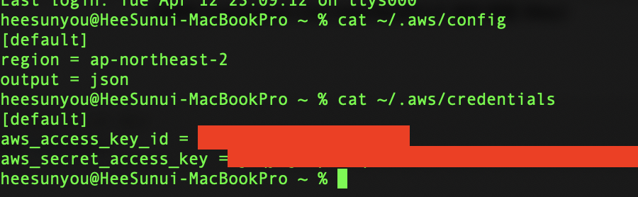 cat ~/.aws/configcat ~/.aws/credentials