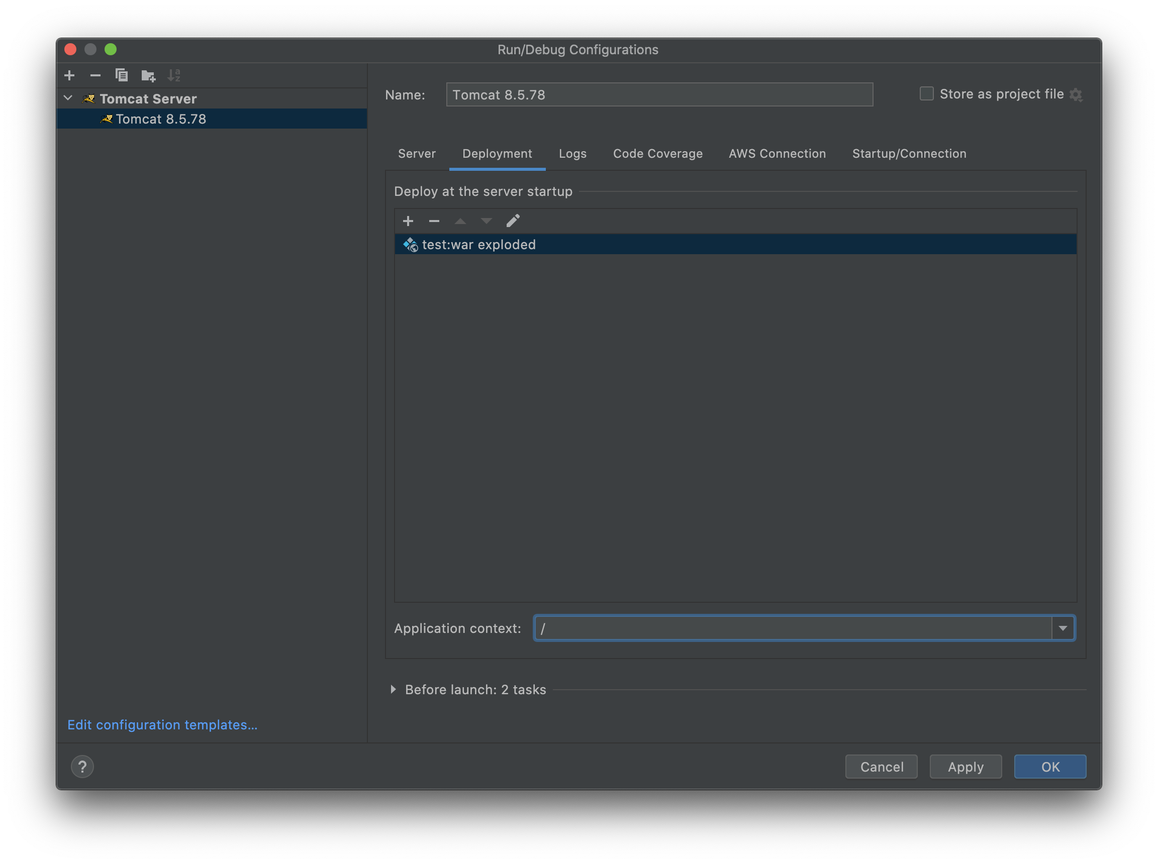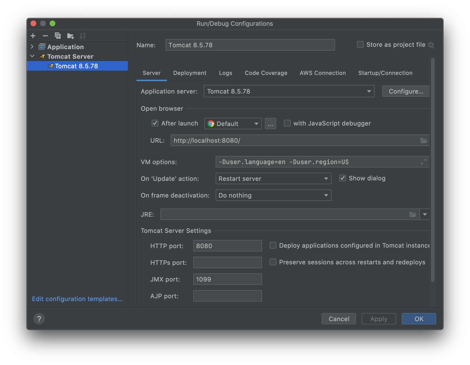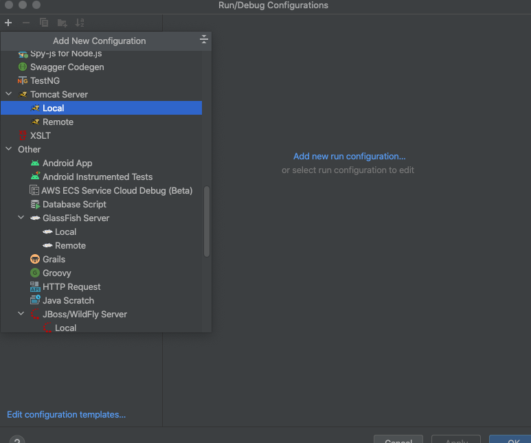 추가해준 것 일뿐, 아직 Tomcat 은 연결되지 않았다. (ㅠㅠ)[Run -> Edit Configuration]