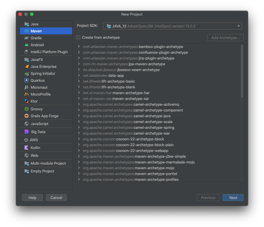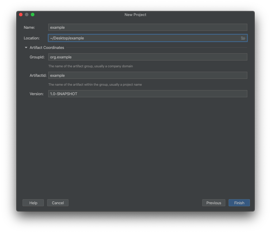 Gradle 처럼 디펜던시 추가 설정 화면이 나오지 않고 바로 생성된다.