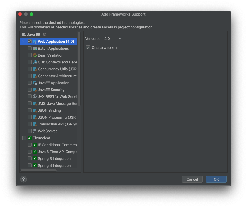 WebApplication, Spring MVC, Tomcat 정도만 추가하기로 한다.