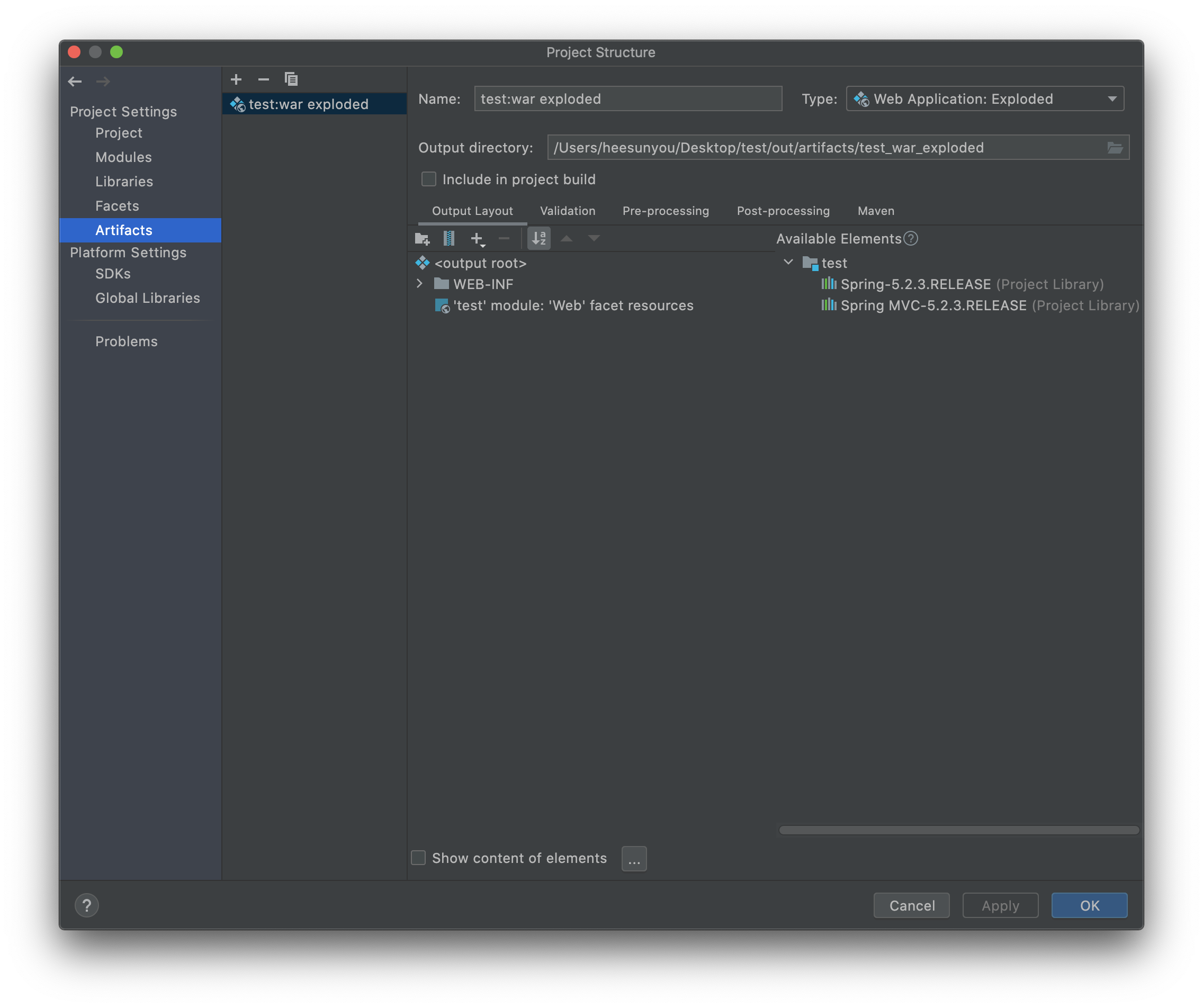 무튼 Artifact 에 빌드 시 필요한 파일들을 세팅했으니