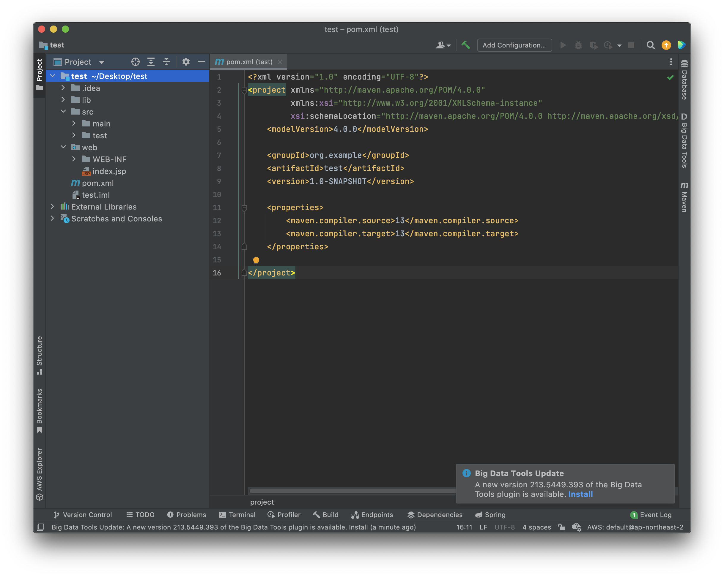 <?xml version="1.0" encoding="UTF-8"?> <project xmlns="http://maven.apache.org/POM/4.0.0" xmlns:xsi="http://www.w3.org/2001/XMLSchema-instance" xsi:schemaLocation="http://maven.apache.org/POM/4.0.0 http://maven.apache.org/xsd/maven-4.0.0.xsd"> <modelVersion>4.0.0</modelVersion> <groupId>org.example</groupId> <artifactId>test</artifactId> <version>1.0-SNAPSHOT</version> <properties> <maven.compiler.source>13</maven.compiler.source> <maven.compiler.target>13</maven.compiler.target> <org.springframework-version>5.3.7</org.springframework-version> </properties> <dependencies> <dependency> <groupId>org.springframework</groupId> <artifactId>spring-core</artifactId> <version>${org.springframework-version}</version> </dependency> <dependency> <groupId>org.springframework</groupId> <artifactId>spring-webmvc</artifactId> <version>${org.springframework-version}</version> </dependency> </dependencies> </project>무튼 뚝딱 만들어보자면 이런식인데