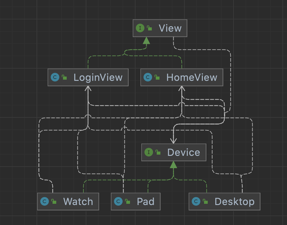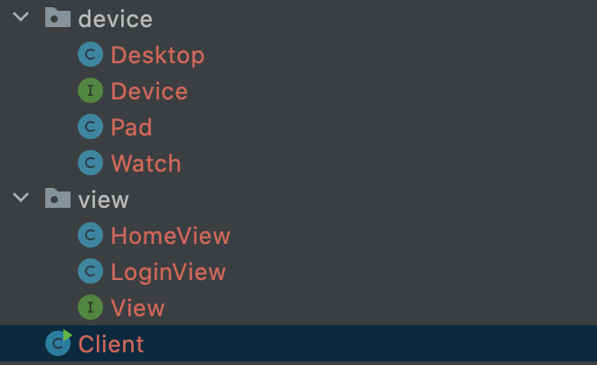 public class Client { public static void main(String[] args) { HomeView homeView = new HomeView(); Device device = new Pad(); homeView.render(device); } }