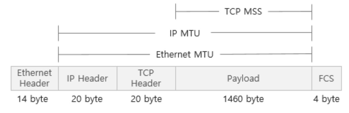 이를 설명하기 위한 개념이 MTU(Maximum Transmission Unit) 와 MSS(Maximum Segment Size) 이다.