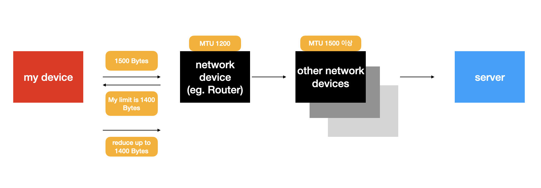 그렇다. 내 주변 LAN 의 구성이야 사용자가 노력해서 알 수 있다고 하지만, 데이터를 보낼 서버의 LAN 은 사용자가 어떻게 매번 조사를 하겠는가. 애초에 도착지점까지의 모든 장치의 MTU 를 미리 알 수 있다하더라도, 유지보수 이후 MTU 가 변경된다면 무슨소용인가.