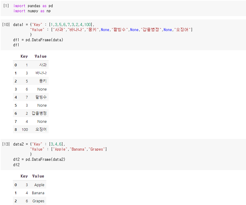 # df1과 df2의 생성