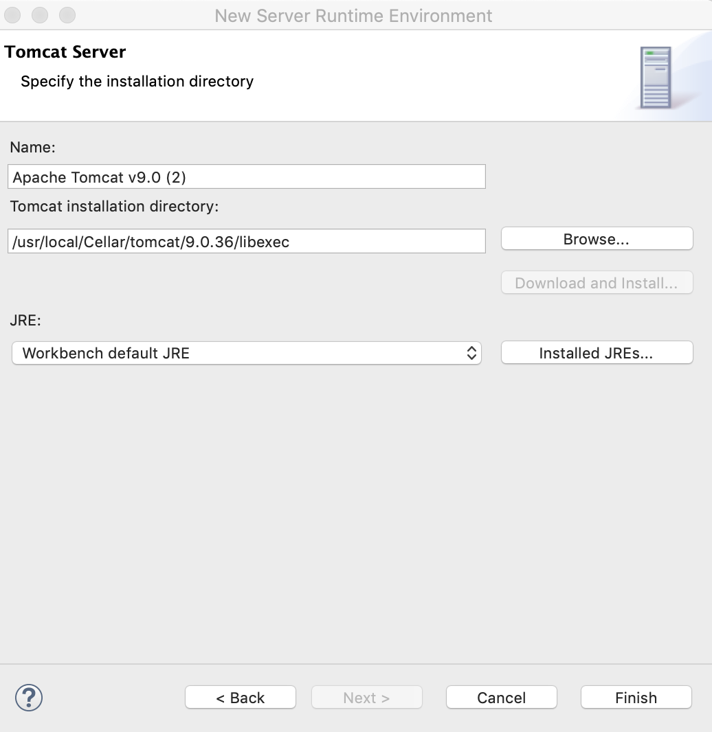 * homebrew 로 설치시, 경로는 /usr/local/Cellar/tomcat