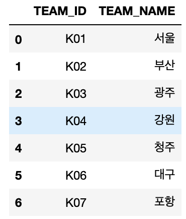 WHERE B.TEAM_ID = A.TEAM_ID; # A.TEAM_ID를 기준으로 B테이블과 비교하며 조인