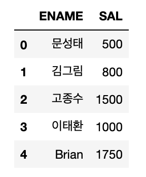 - 바로 위의 예시에서 Brian 이 SALGR 테이블의 조건에 만족하지 않아 출력이 되지않음 (조인조건에 만족하지 않음)