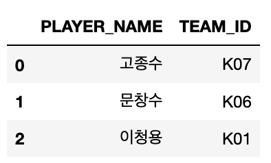 SQL> SELECT A.PLAYER_NAME, A.TEAM_ID