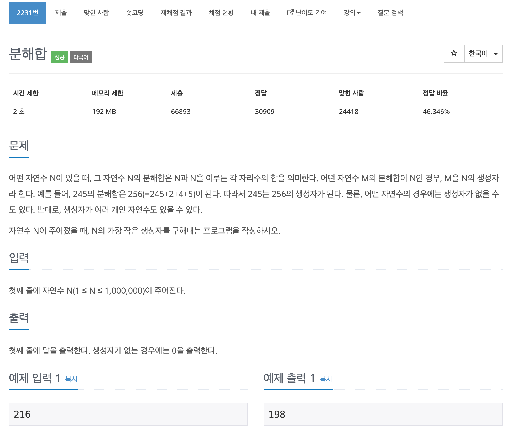 [Dev-Ping9] 백준 2231번 - 분해합 (Java)